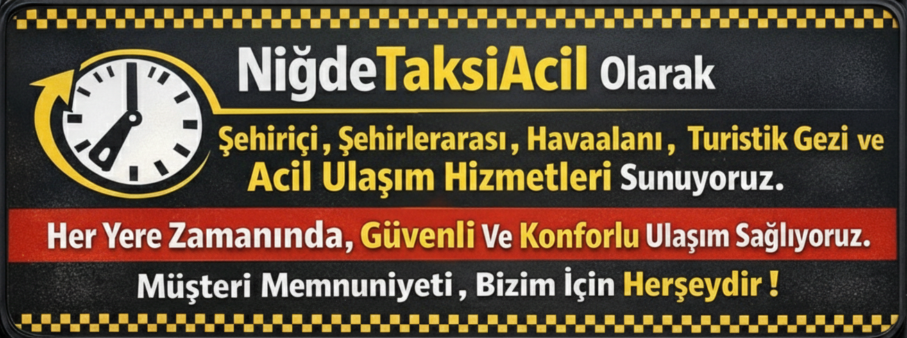 Niğde'nin En Güvenilir Taksi Hizmeti ile her yolculuğunuz güven ve konforla başlar! Günün her saati 7/24 kesintisiz hizmet veren ihtiyacınız olan her noktaya hızlı ve güvenli ulaşım sağlıyoruz. klimalı araçlarımız ve şeffaf fiyat politikamızla tüm ulaşım ihtiyaçlarınıza profesyonel çözümler sunuyoruz.
